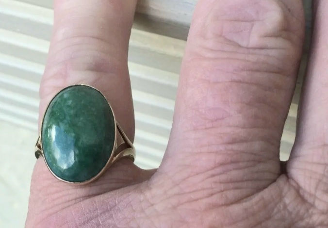 Vintage 9ct Gold Gents Jade Cabochon Signet Ring 6.6g